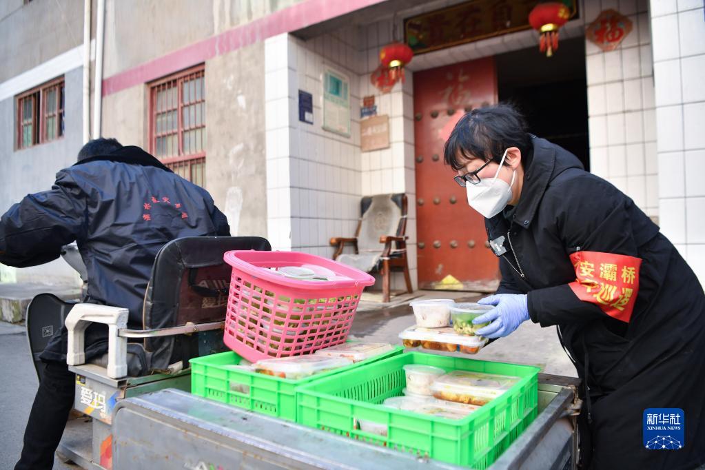 1月12日,三家村工作人員準(zhǔn)備為一戶居民派送午餐。新華社記者 張博文 攝