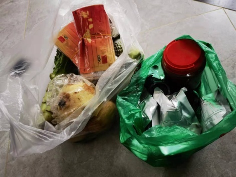 我下沉在我居住的小區(qū)百貴園,小區(qū)不大,實(shí)際入住了244戶。下沉干部和志愿者主要負(fù)責(zé)愛心菜的消殺、接收、分揀、分組投送入戶,各個流程有條不紊地進(jìn)行著,我負(fù)責(zé)一個單元的投送入戶。