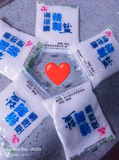 在這一天的上午,小區(qū)突然收到一堆食用鹽,10多袋整齊地碼成了一堵墻,在陽光下顯得是那么的耀眼,居民們都爬在自家窗戶上往下探望著、猜測著這又會是什么驚喜大禮包。