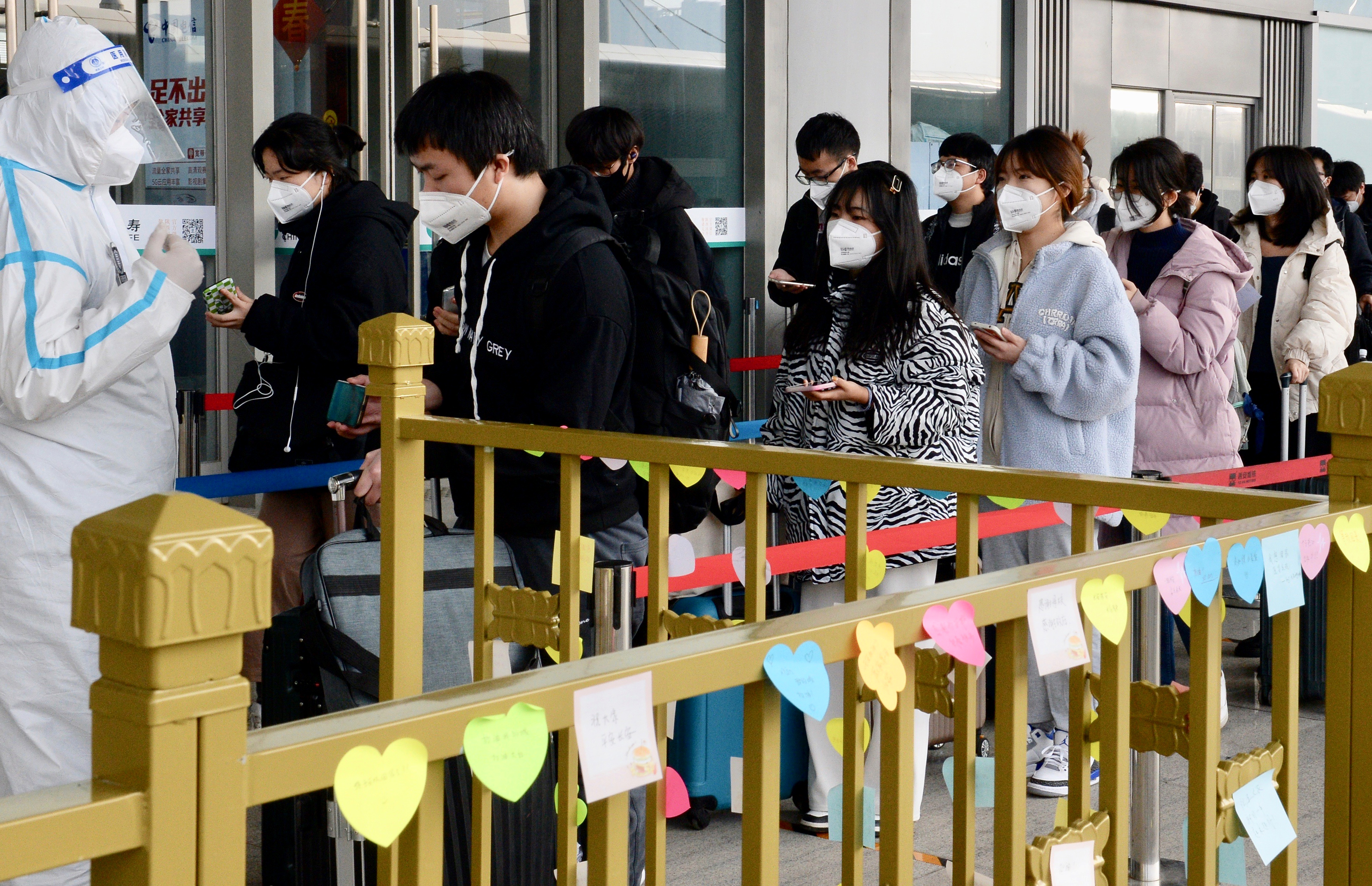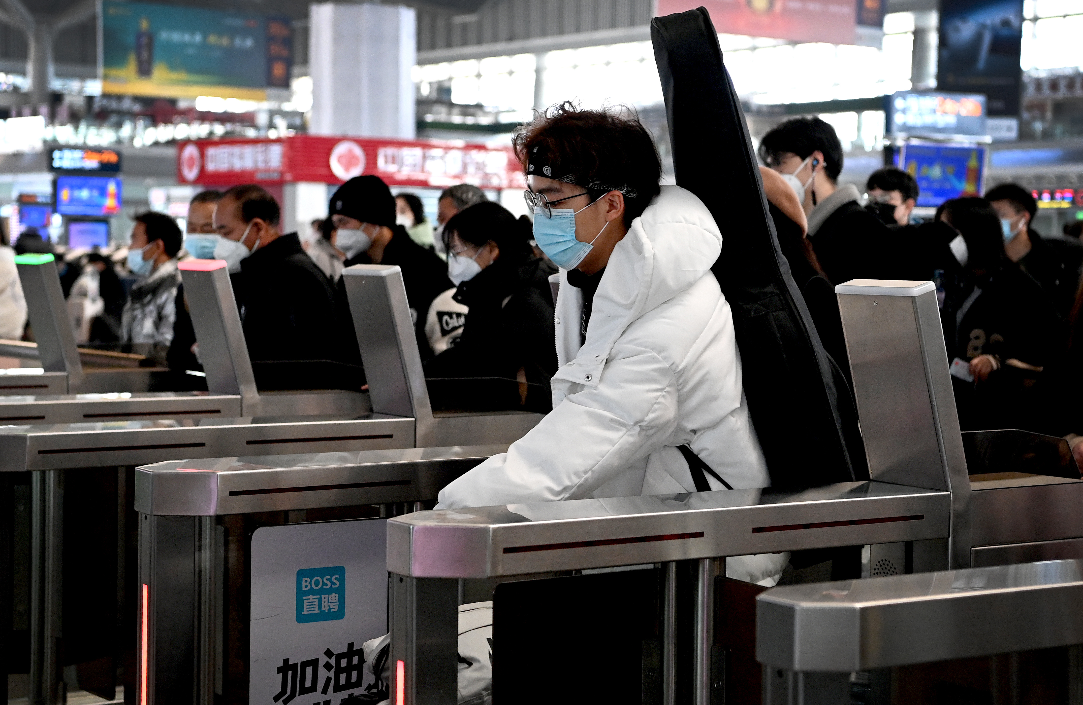 1月16日,西安北客站,離校返鄉(xiāng)的西安高校學(xué)生進(jìn)站時(shí)出示核酸檢測報(bào)告。新華社記者 劉瀟 攝