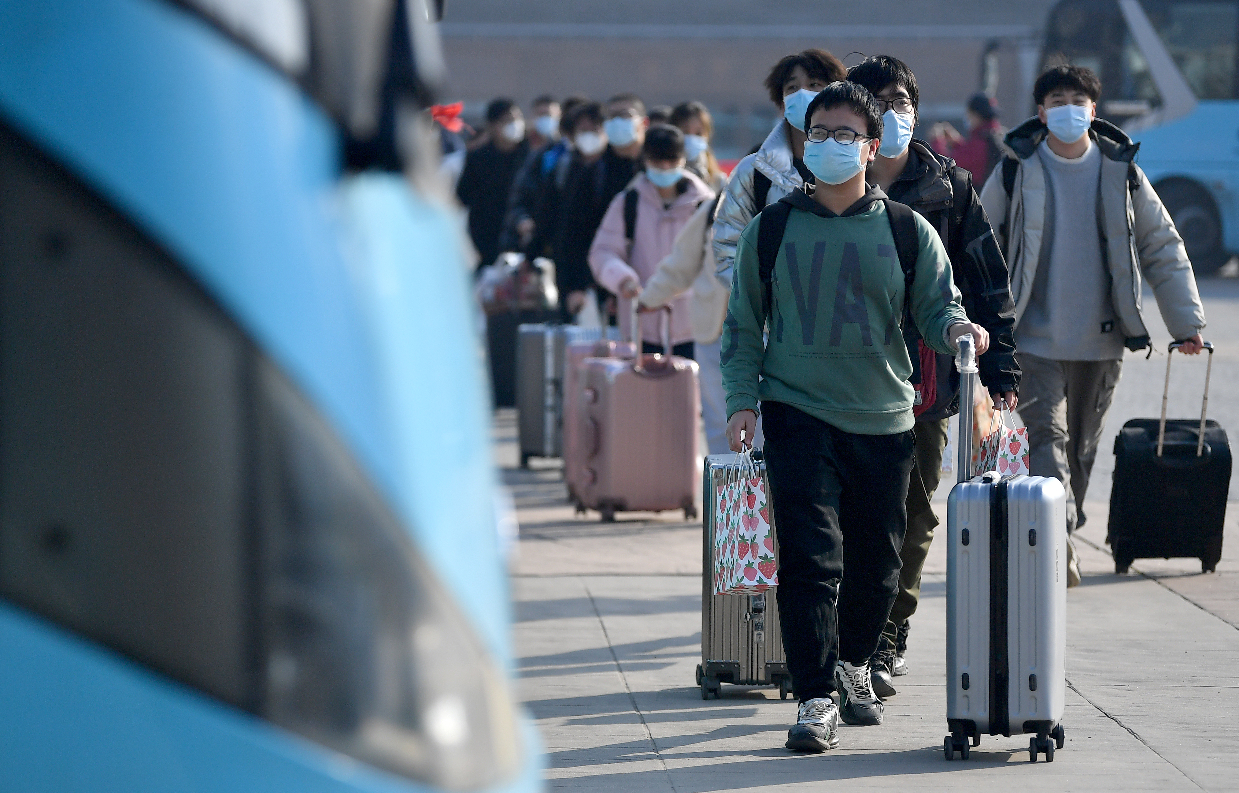 1月16日,西安北客站,離校返鄉(xiāng)的西安高校學(xué)生排隊(duì)進(jìn)站。新華社發(fā)(鄒競一 攝)