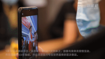 1月17日是春運(yùn)首日,高原復(fù)興號(hào)C881次列車(chē)上,旅客與乘務(wù)員傾情互動(dòng),共同迎接2022年春運(yùn),開(kāi)啟高原復(fù)興號(hào)在世界屋脊的首次春運(yùn)。
