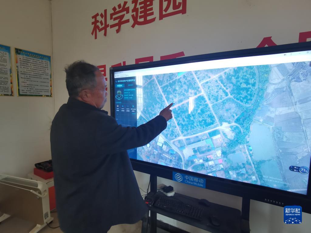 康登明正在通過屏幕了解果園實時情況。新華社記者 熊家林 攝