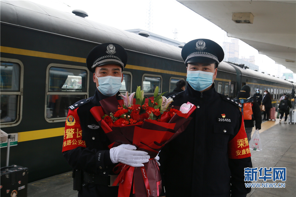 今年59歲的老汪是安康鐵路公安處乘警支隊的老乘警。1988年參加公安工作的他在紫陽站派出所工作了13年。2001年調入乘警支隊,在乘警崗位上一待就是21年。而今年的春運對老汪來說有著特殊的意義,春運首日也是老汪最后一趟值乘。在安康站始發(fā)前,支隊政委呂昭琦專程送來鮮花表示對老汪多年工作的感謝。已堅守34個春運,用老汪的話來說,自己沒有過轟轟烈烈的大事,只是做好本職的工作,從沒有對不起過頭頂?shù)木铡?/p>