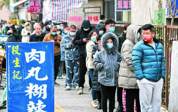 ▲1月20日,市民在西安市未央?yún)^(qū)一家小吃店前排隊購買食品。自1月19日起,西安市曲江新區(qū)、未央?yún)^(qū)、經(jīng)開區(qū)、浐灞生態(tài)區(qū)、國際港務區(qū)陸續(xù)迎來解封。新華社記者陶明攝