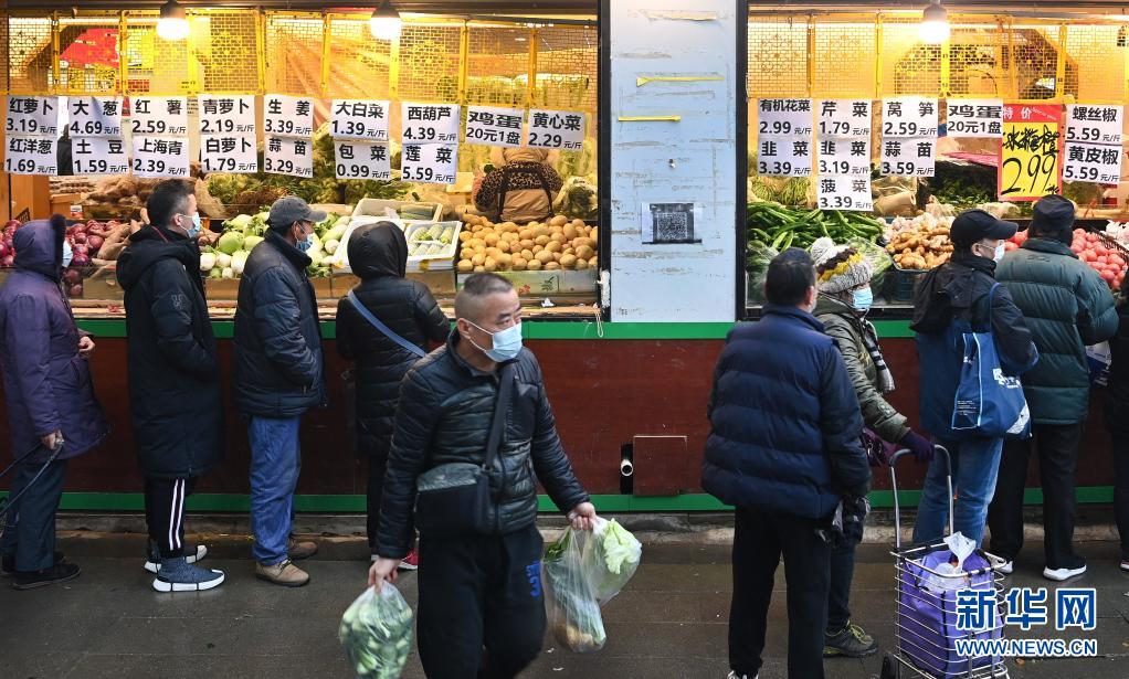 1月23日,在西安市碑林區(qū),市民排隊(duì)購物。