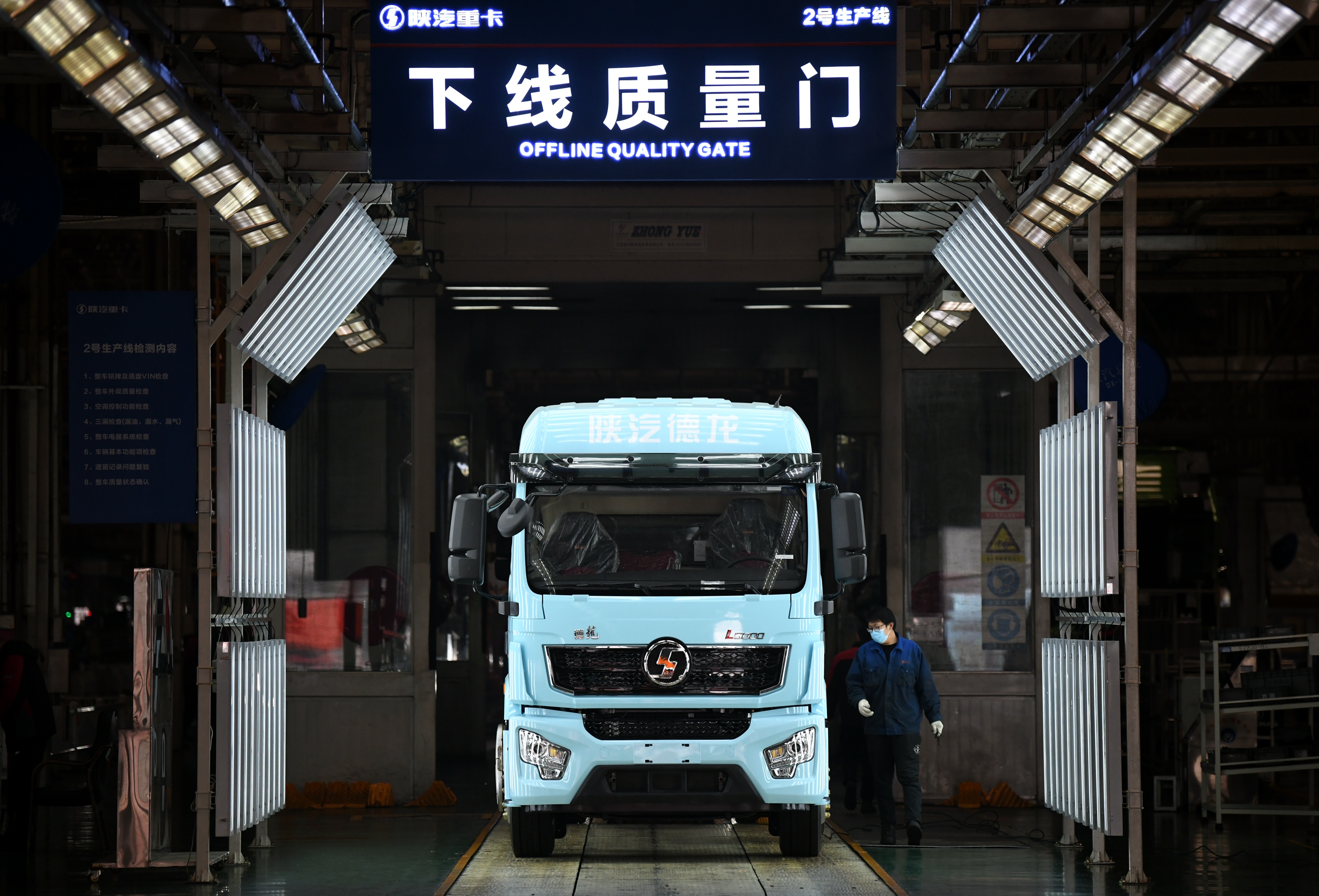 凜冬時(shí)節(jié),位于西安市經(jīng)開(kāi)區(qū)的陜汽控股集團(tuán)總裝配車間,機(jī)器轟鳴,兩條各475米長(zhǎng)的傳送鏈正在緩慢推進(jìn),390余名戴著口罩、身著藍(lán)色工服的工人們正埋頭組裝汽車,平均每六分鐘就有一輛重卡從這里下線,遠(yuǎn)銷國(guó)內(nèi)外市場(chǎng)。