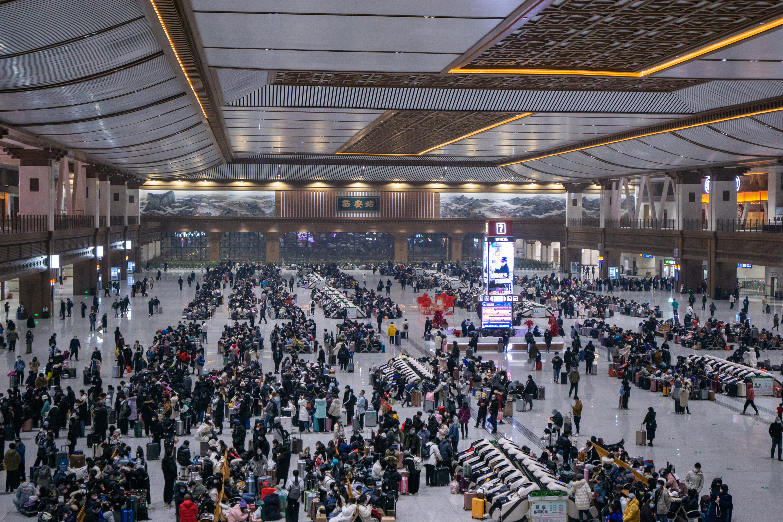 高鐵西安北站,看著候車大廳不斷增加的旅客,中國(guó)鐵路西安局集團(tuán)有限公司工作人員李子宇和同事們頗為感慨:“前一陣候車大廳顯得冷清,這下春運(yùn)的感覺(jué)有了,過(guò)年的氛圍也有了,我們也忙起來(lái)了!”