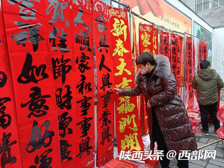 在鄠邑區(qū)書畫一條街,顧客在挑選春聯(lián)。