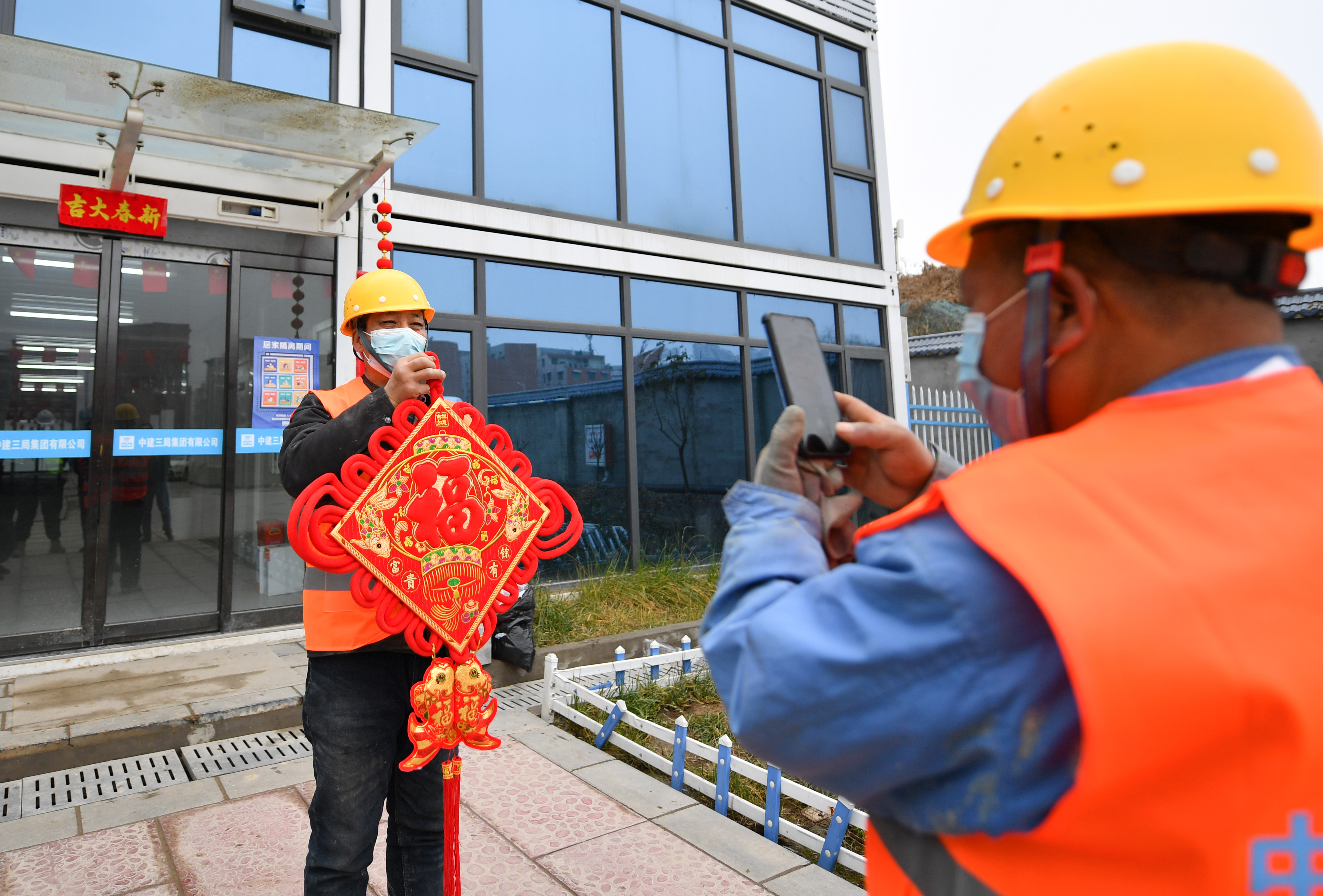 當(dāng)日是農(nóng)歷臘月二十八,在陜西省西安市第一實(shí)驗(yàn)學(xué)校建設(shè)項(xiàng)目工地,留守工地的建設(shè)者用貼春聯(lián)、掛燈籠等方式,迎接佳節(jié)的到來(lái)。