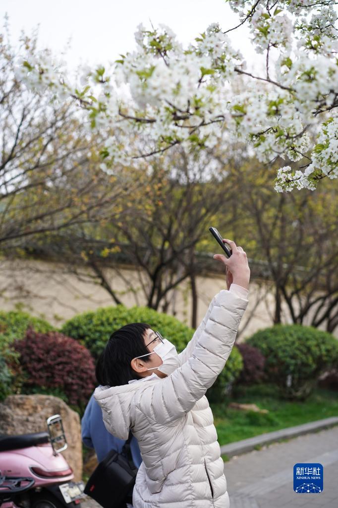 3月23日,游人在南京市雞鳴寺路賞花拍照。新華社記者 季春鵬 攝