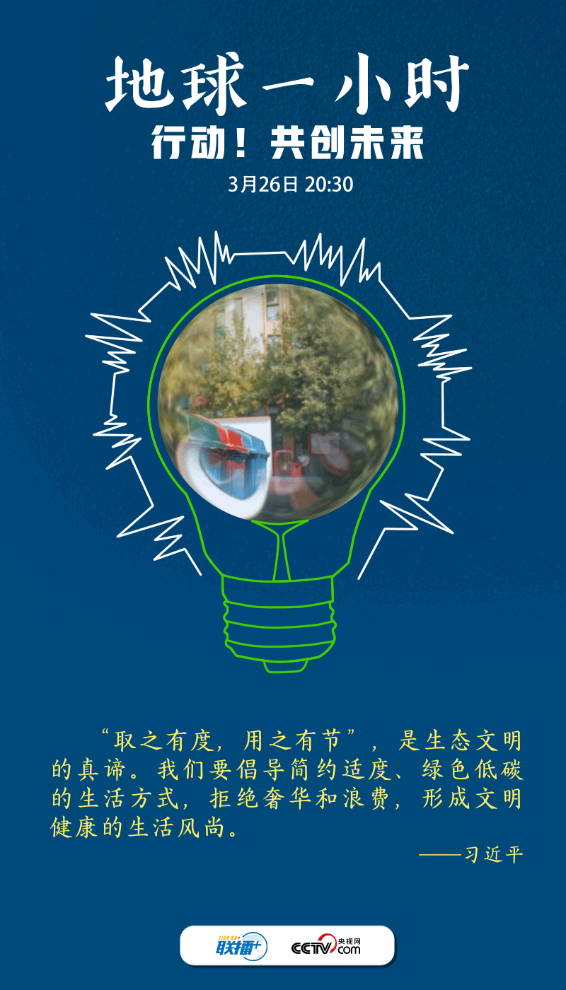 保護(hù)地球不止一小時(shí)。央視網(wǎng)《聯(lián)播+》梳理總書記相關(guān)論述,邀您一起“節(jié)”盡所“能”,爭當(dāng)?shù)厍蚣覉@呵護(hù)者、綠色生活理念傳播者、低碳生活方式踐行者,為建設(shè)綠色新家園多作貢獻(xiàn)。