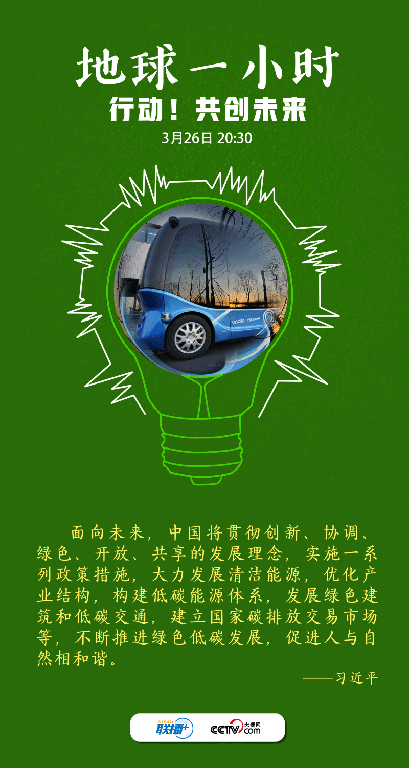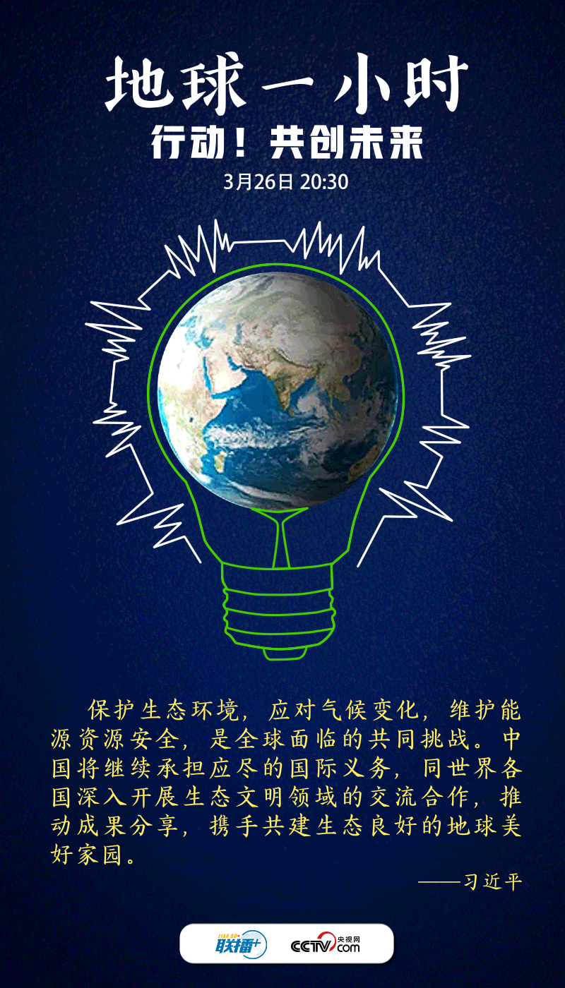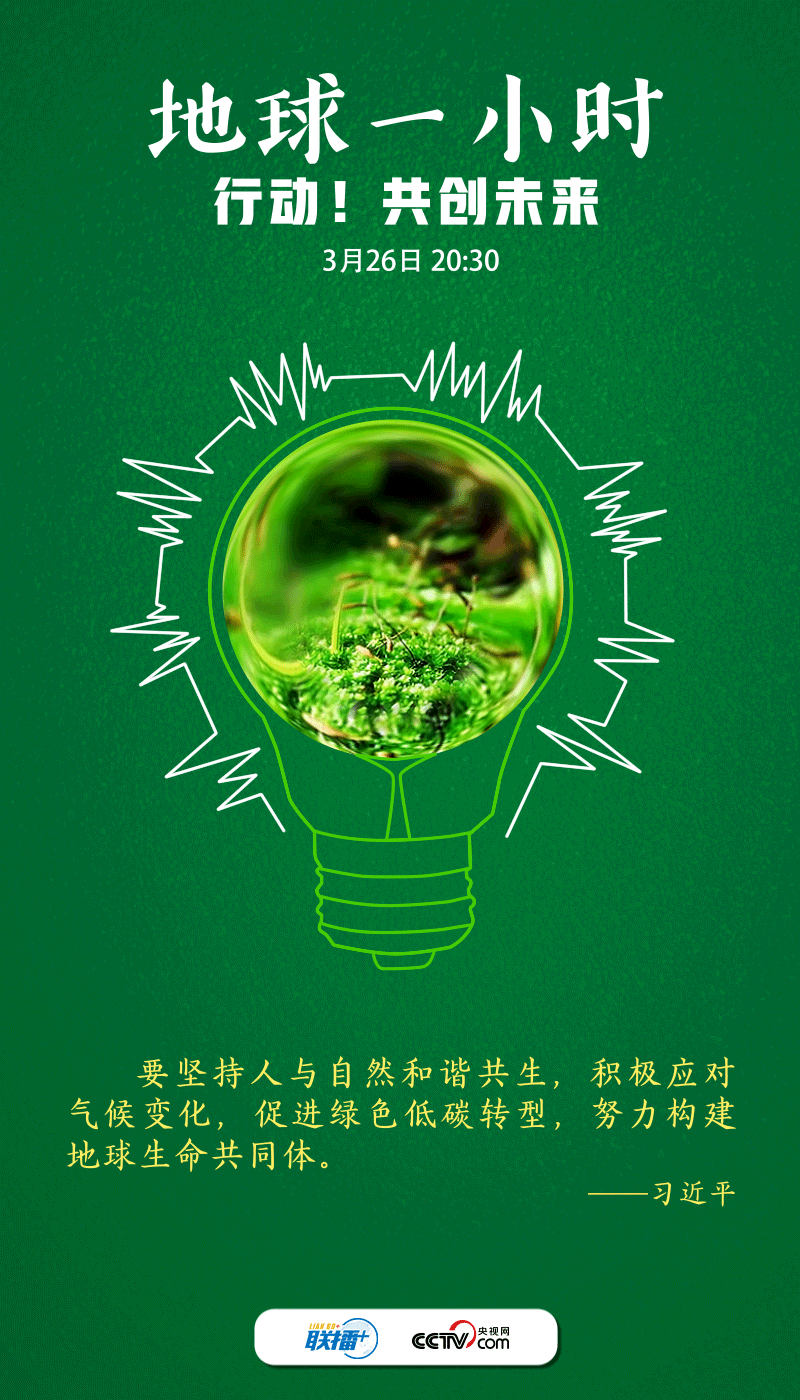 聯(lián)播+2022年3月26日是“地球一小時(shí)”活動(dòng)日。今年的主題是“行動(dòng)!共創(chuàng)未來”,呼吁世界各國在2030年之前,就自然保護(hù)、氣候變化和可持續(xù)發(fā)展等達(dá)成全球合作,讓自然向好,讓人類受益。