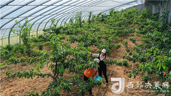 村民王大姐就是其中受益的一員。由于丈夫身體受傷不能干重活,弟弟身有殘疾,王大姐近幾年一直在產(chǎn)業(yè)園里打工。這份工作時(shí)間靈活,可以做到有事忙事,沒事上班。4月27日,王大姐正忙著在櫻桃大棚里采摘。提到這份工作,她心滿意足地告訴記者:“一小時(shí)10元,算下來平均一個月有2000多的收入。”除了這份收入,她家還種植了蘋果等經(jīng)濟(jì)農(nóng)作物,也能增加一些收入。