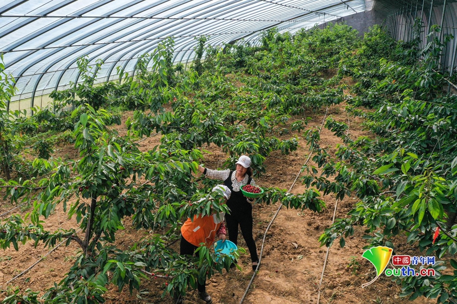 村民王大姐就是其中受益的一員。由于丈夫身體受傷不能干重活,弟弟身有殘疾,王大姐近幾年一直在產(chǎn)業(yè)園里打工。這份工作時(shí)間靈活,可以做到有事忙事,沒事上班。4月27日,王大姐正忙著在櫻桃大棚里采摘。提到這份工作,她說:“一小時(shí)10元,算下來平均一個(gè)月有2000多的收入。”除了這份收入,她家還種植了蘋果等經(jīng)濟(jì)農(nóng)作物,也能增加一些收入。