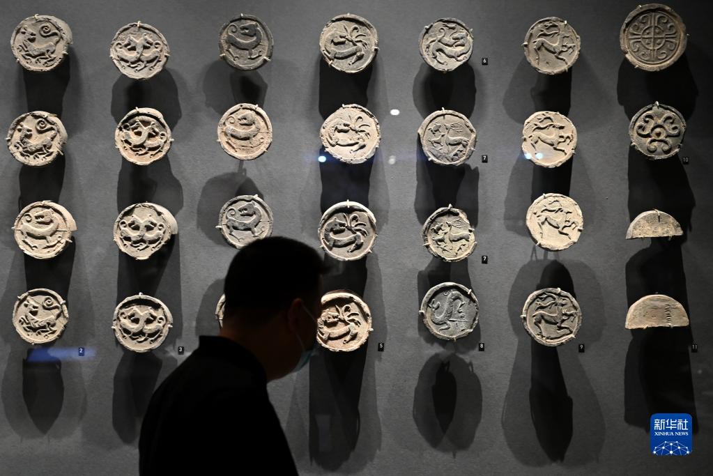 4月28日,游客在陜西考古博物館內(nèi)收集文創(chuàng)印章留念。新華社記者 李一博 攝