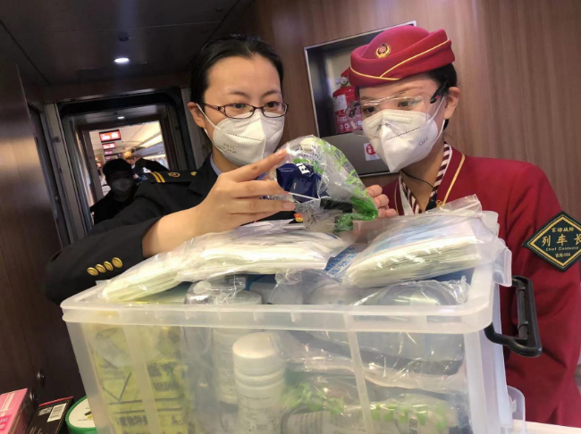 楊珺通常是早上5點剛過,就早早來到天津站站臺,等候登上早上6點半左右的第一班列車檢查乘務(wù)工作。疫情以來,楊珺總是習(xí)慣“早到一點”,充分利用這段“慢節(jié)奏”時間,靜下心來把近期的重點工作梳理清楚,編輯成微信溫馨提示發(fā)送給即將出乘的班組,方便大家閱讀學(xué)習(xí)。列車一到站臺,楊珺就和出乘的班組一同登上列車,開始了細致的檢查,車廂衛(wèi)生,備品擺放,物品定型,設(shè)備設(shè)施的狀況,防疫用品的配備,“勞動節(jié)假期快要到了,客流量會比往日增加,這期間我們一定要比平時更加細致,像座位扶手、垃圾箱、門把手,只要是旅客頻繁接觸的位置,都必須逐一落實消毒要求……”每走到一個車廂,楊珺都會一遍又一遍地叮囑,并且和乘務(wù)員一起落實所在區(qū)域的重點安全工作。