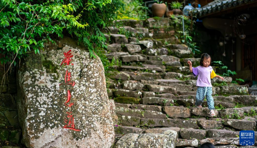 小朋友在云南省寧洱縣那柯里茶馬古道小鎮(zhèn)玩耍(5月14日攝)。新華社記者江文耀攝
