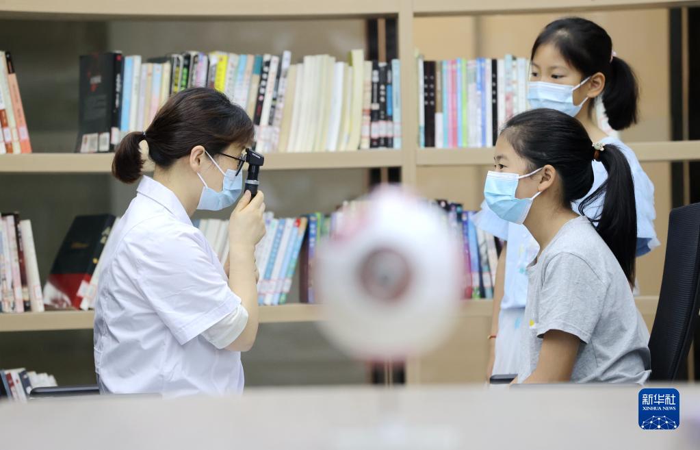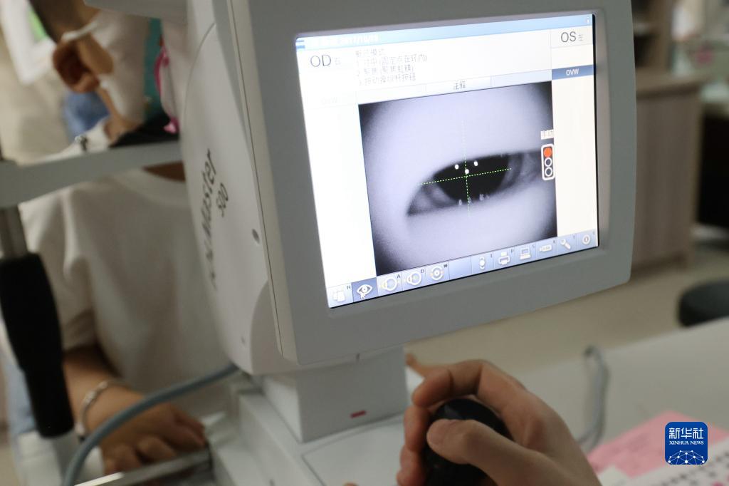 6月5日,學(xué)生在貴州省黔西市人民醫(yī)院眼科檢查視力。新華社發(fā)(范暉 攝)