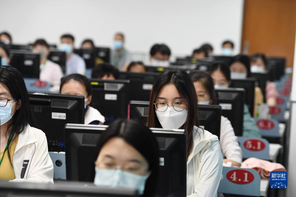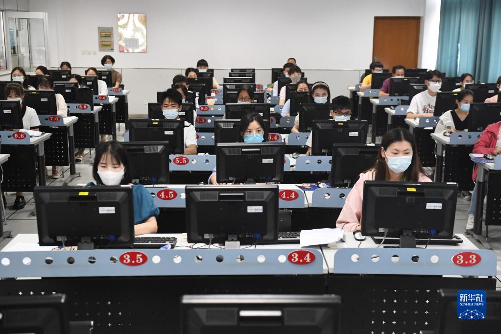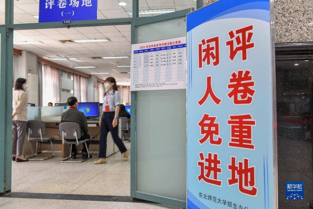 6月14日,在位于吉林長春的東北師范大學(xué)高考網(wǎng)上評(píng)卷點(diǎn),工作人員在評(píng)卷。據(jù)了解,2022年吉林省高考評(píng)卷工作全部采用電子掃描、網(wǎng)上評(píng)卷方式進(jìn)行。新華社記者 張楠 攝