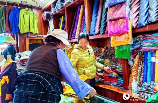 進入旅游旺季后,來自天南地北的游客到拉薩八廓古城賞民俗品文化,位于八廓街上的朵究倉藏裝店也因此成了必備網(wǎng)紅打卡店。“我在新聞里看到總書記來過你們店,所以專門過來的,想買一身藏裝作紀(jì)念,老板你幫我看看哪件合適?”來自東北的吳女士邊挑選衣服邊說。