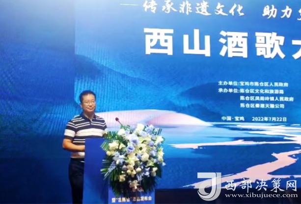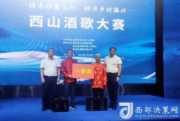 西部決策網(wǎng)訊(劉恒 通訊員 王榮)為傳承陜西省非物質(zhì)文化遺產(chǎn)“西山酒歌”文化,積極探索鄉(xiāng)村特色文化產(chǎn)業(yè)助推鄉(xiāng)村振興,進一步豐富人民群眾文化生活,展示廣大人民群眾的良好精神風(fēng)貌。7月22日由寶雞市陳倉區(qū)人民政府主辦,區(qū)文旅局、鳳閣嶺鎮(zhèn)人民政府承辦的“西山酒歌”大賽在寶雞奧斯頓酒店圓滿落下帷幕。鳳閣嶺鎮(zhèn)6個參賽隊40余名選手參加了此次比賽。區(qū)政協(xié)主席茍曉明,區(qū)委常委、常務(wù)副區(qū)長屈亞奇,區(qū)委常委、人武部政委王斌,區(qū)委常委、宣傳部長徐宏剛,區(qū)人大常委會副主任尉曉平,寶雞市西山建委副主任齊文強,市陸港新城紀工委書記李巖,區(qū)法院黨組書記、院長田廣玉,區(qū)文化和旅游局局長齊智雄,鳳閣嶺鎮(zhèn)黨委書記張小衛(wèi),鎮(zhèn)長牟峰濤,區(qū)級各部門、各鎮(zhèn)街有關(guān)領(lǐng)導(dǎo)參加活動。