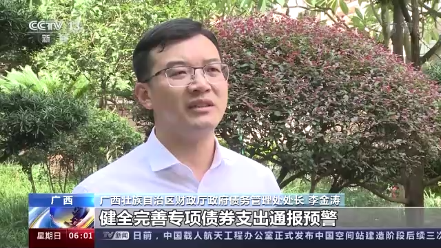 廣西壯族自治區(qū)財政廳政府債務(wù)管理處處長 李金濤:健全完善專項債券支出通報預(yù)警、調(diào)整收回、激勵約束等系列機制。在專項債券資金監(jiān)管方面,我們事前嚴(yán)格審核標(biāo)準(zhǔn),提高項目質(zhì)量;事中精準(zhǔn)安排調(diào)度,壓實支出責(zé)任;事后開展績效評價,完善獎懲機制,確保了債券資金及時、合規(guī)、高效使用。