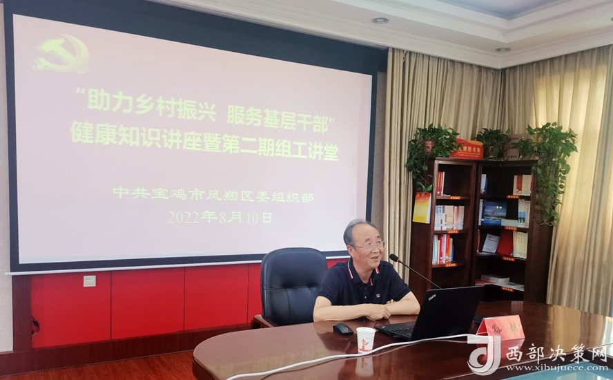 西部決策網(wǎng)訊 近日,九三學(xué)社寶雞市鳳翔區(qū)綜合支社醫(yī)學(xué)研究室,在鳳翔區(qū)委組織部開展“助力鄉(xiāng)村振興 服務(wù)基層干部”健康知識(shí)講座活動(dòng)。本次活動(dòng)以智慧黨建平臺(tái)視頻系統(tǒng)召開,鳳翔區(qū)委組織部為主會(huì)場(chǎng),各鎮(zhèn)、村設(shè)分會(huì)場(chǎng),各鎮(zhèn)機(jī)關(guān)干部、村干部,駐村工作隊(duì)第一書記、隊(duì)員,鳳翔區(qū)委組織部機(jī)關(guān)全體干部,共計(jì)600余人參加會(huì)議。