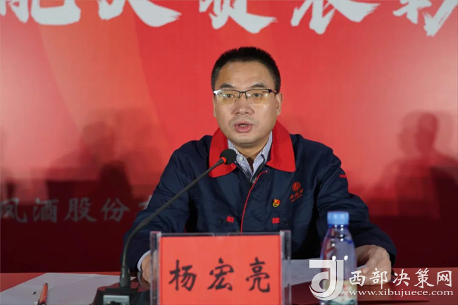 楊宏亮宣讀《關(guān)于西鳳集團(tuán)第六屆基酒生產(chǎn)技能大賽獲獎集體和個人的通報(bào)》