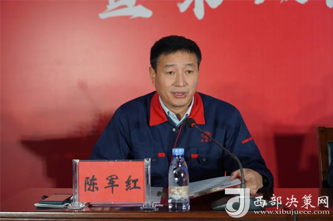 陳軍紅宣讀《關(guān)于對2021—2022基酒生產(chǎn)周期產(chǎn)質(zhì)量勞動競賽獲獎車間、班組進(jìn)行表彰獎勵的決定》