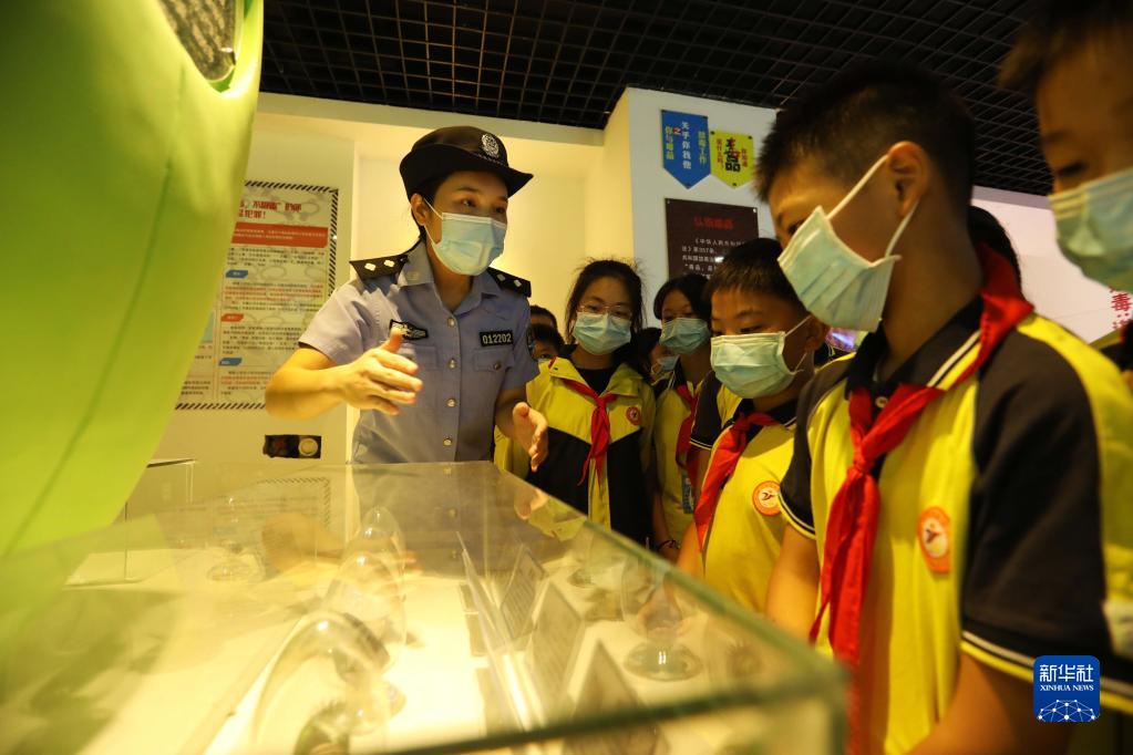9月1日,在貴州省赤水市天臺(tái)學(xué)校,民警給學(xué)生講解新型毒品相關(guān)知識(shí)。新華社發(fā)(王長(zhǎng)育 攝)