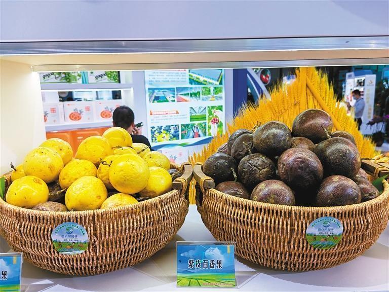 在“帆船”的后方展柜上,“南果北種”取得成功的紫皮百香果、黃金百香果芳香四溢,“紅黃搭檔”紅心火龍果、無刺黃龍火龍果奪人眼球,高陵鮮食棗青翠甘甜,黃綠色的陽光玫瑰讓人垂涎欲滴。