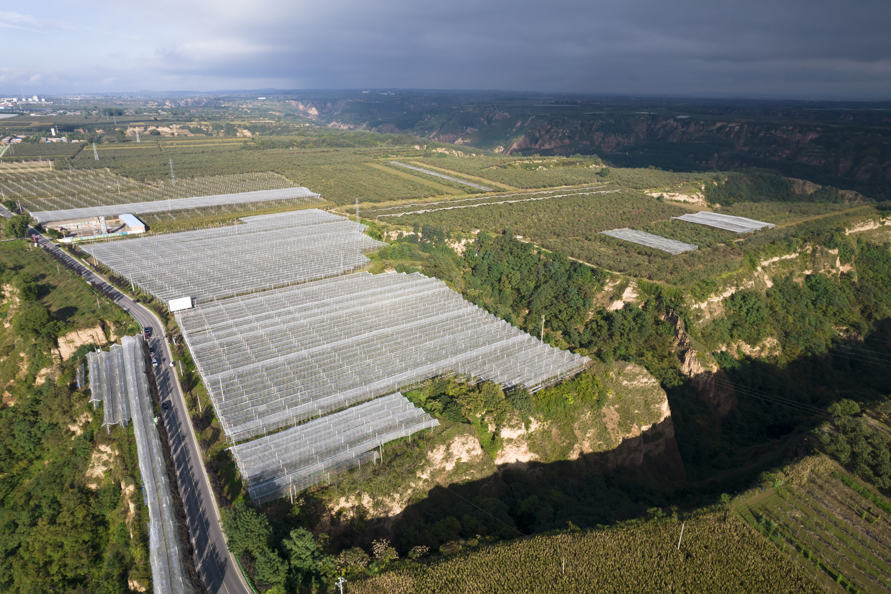 延安市洛川縣舊縣鎮(zhèn)發(fā)展的蘋果產(chǎn)業(yè)(9月20日攝,無人機(jī)照片)。新華社記者 邵瑞 攝