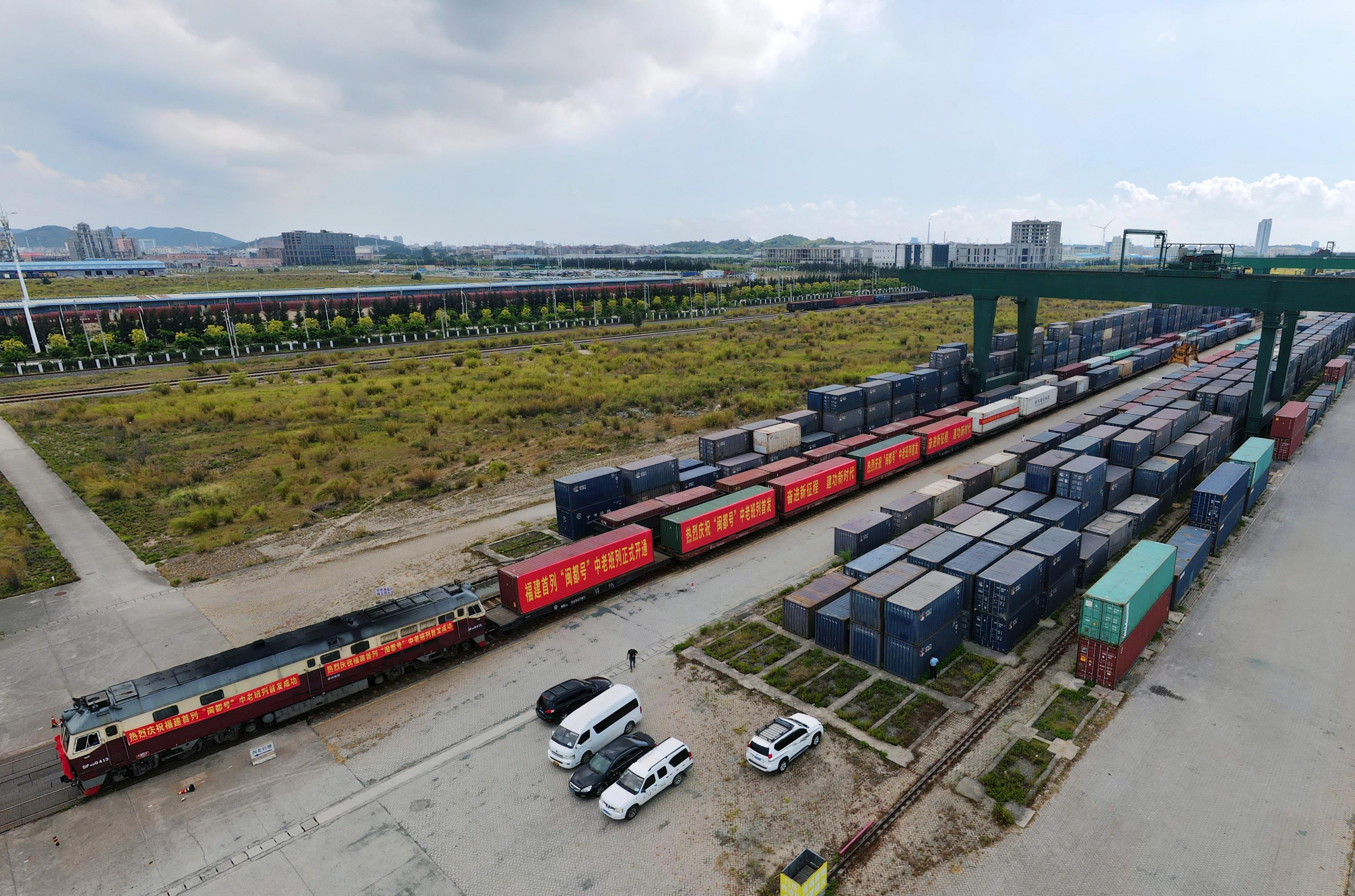 △2022年8月31日,福建首趟中老鐵路國(guó)際貨運(yùn)列車(chē)從福州江陰港站開(kāi)出。