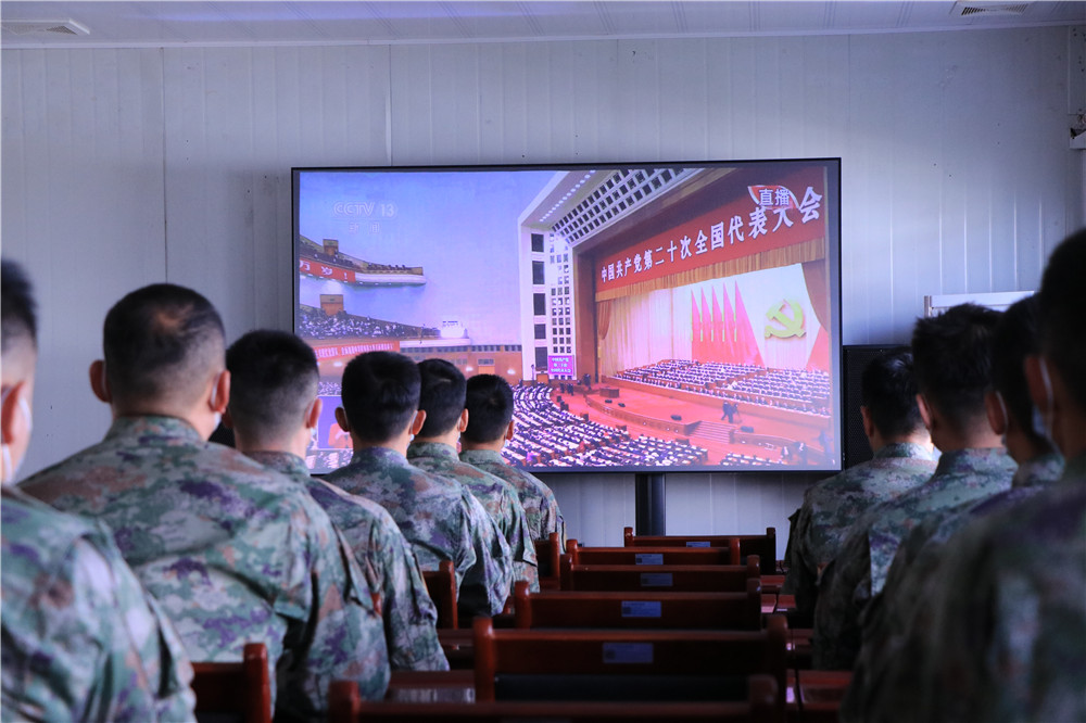 南部戰(zhàn)區(qū)海軍某守備部隊官兵集合在會議室,認真收看黨的二十大開幕并交流體會。在祖國西陲阿爾泰山腹地,新疆軍區(qū)紅山嘴邊防連官兵收看黨的二十大開幕后,立即展開討論。官兵們說:“身后是祖國和人民,我們一定要忠誠履行衛(wèi)國戍邊職責,深入推進實戰(zhàn)化軍事訓練,以過硬軍事能力筑牢邊疆安全穩(wěn)定屏障,努力為黨和人民再立新功。”