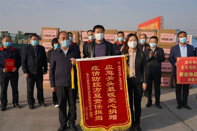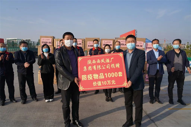 儀式上,西鳳集團(tuán)公司向鳳翔區(qū)新冠疫情工作領(lǐng)導(dǎo)小組捐贈(zèng)了價(jià)值10萬(wàn)元的防疫物資1000套。