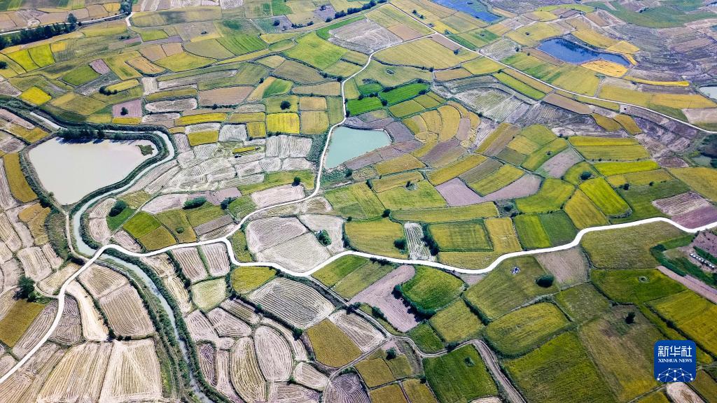 安徽省鳳陽縣小崗村的田野景象(2018年9月27日攝,無人機(jī)照片)。新華社記者 張端 攝