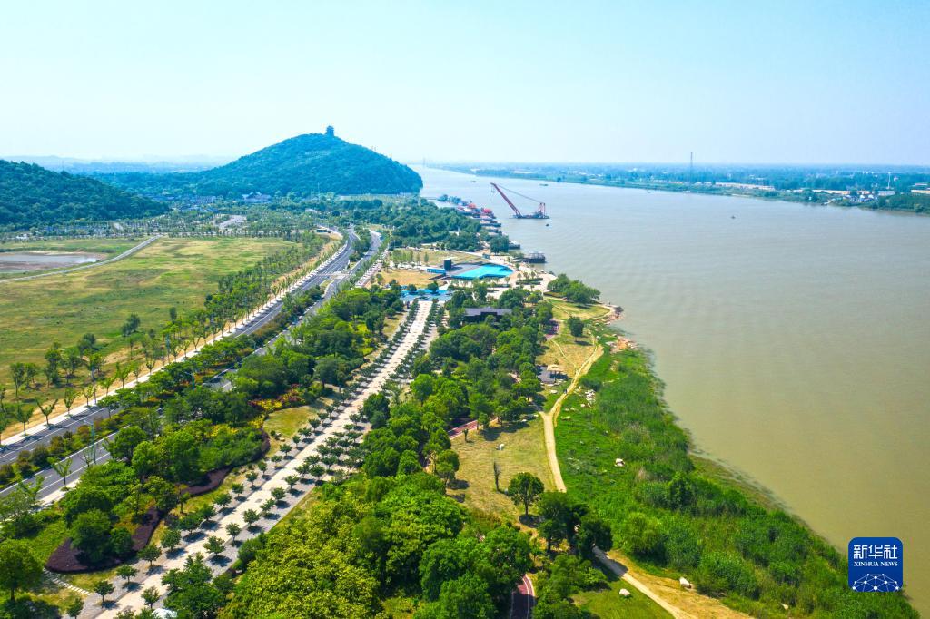 安徽省馬鞍山市長(zhǎng)江岸線景觀帶(2022年5月17日攝,無人機(jī)照片)。新華社發(fā)