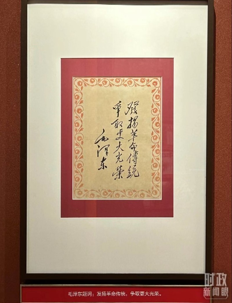△毛澤東題詞:發(fā)揚(yáng)革命傳統(tǒng),爭(zhēng)取更大光榮。(總臺(tái)央視記者范一鳴拍攝)