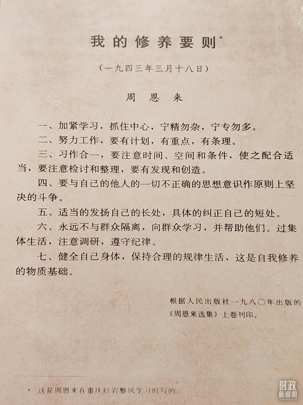 △周恩來(lái)所寫(xiě)《我的修養(yǎng)要?jiǎng)t》。(總臺(tái)央視記者彭漢明拍攝)