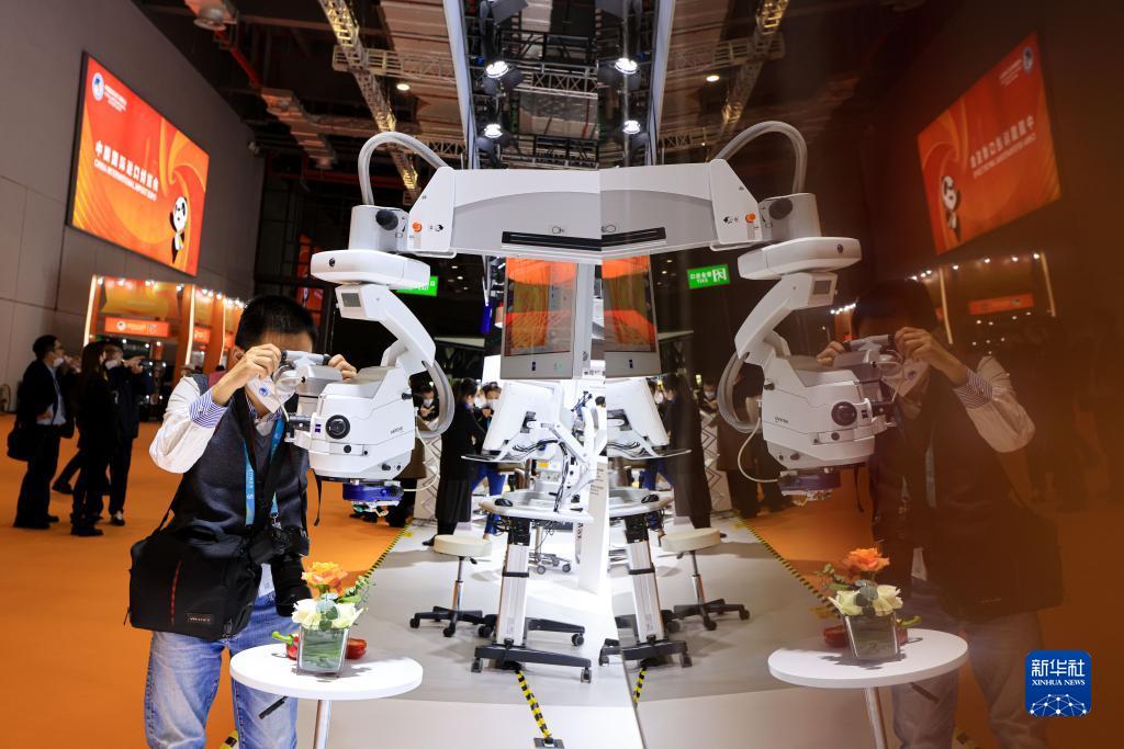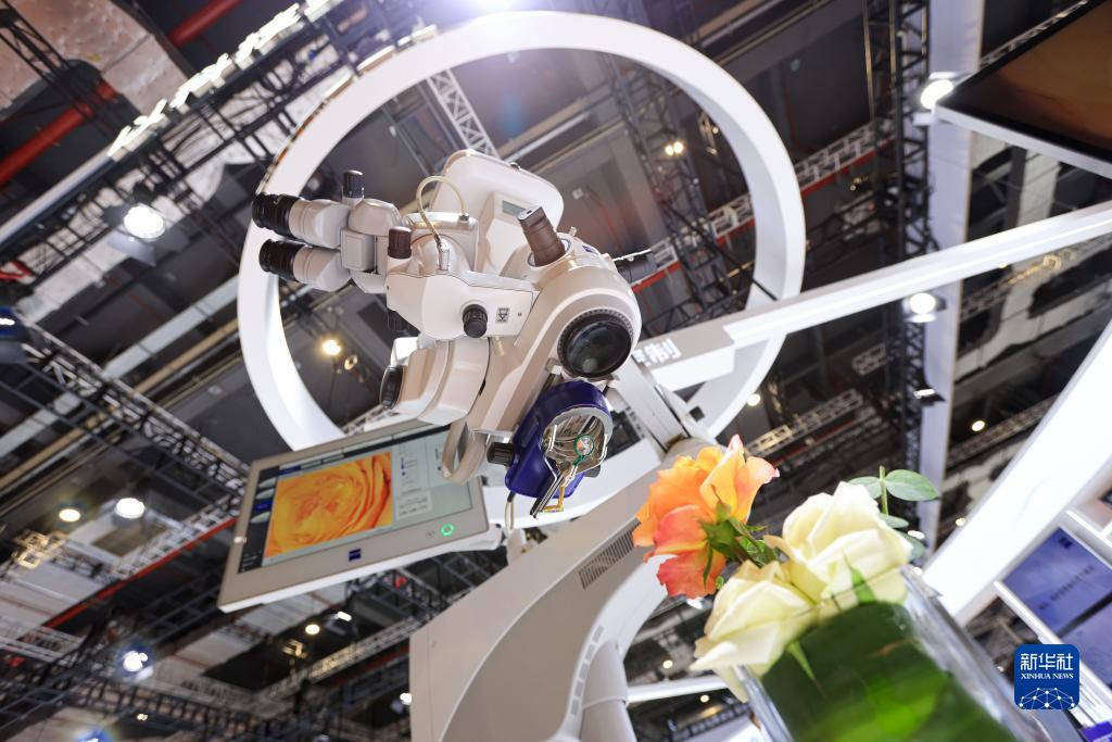 11月6日在第五屆進博會蔡司展臺拍攝的眼科導航手術顯微鏡。新華社記者 李京 攝