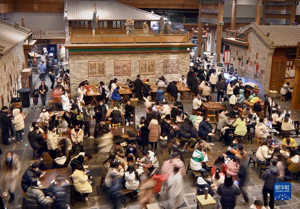 游客在位于河南省鄭州市中牟縣的電影小鎮(zhèn)餐廳就餐(2022年12月31日攝)。新華社記者 李安 攝