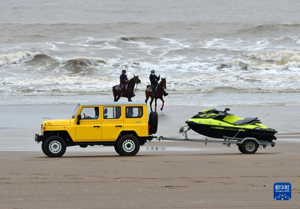 1月1日,馬術(shù)俱樂(lè)部成員在福建省福州市長(zhǎng)樂(lè)區(qū)南澳海灘體驗(yàn)海騎樂(lè)趣。新華社記者 魏培全 攝