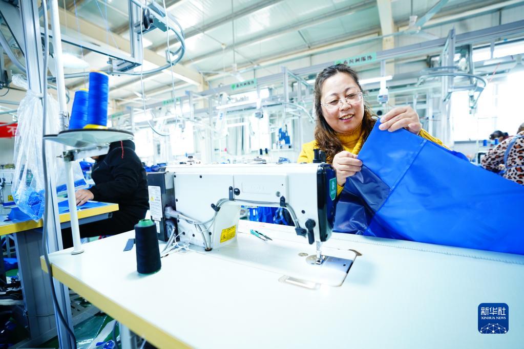 2022年12月26日,在河北省阜平縣大教廠村的春風樹服飾有限公司手工業(yè)生產(chǎn)車間,村民在做校服。新華社發(fā)(李秀芹 攝)