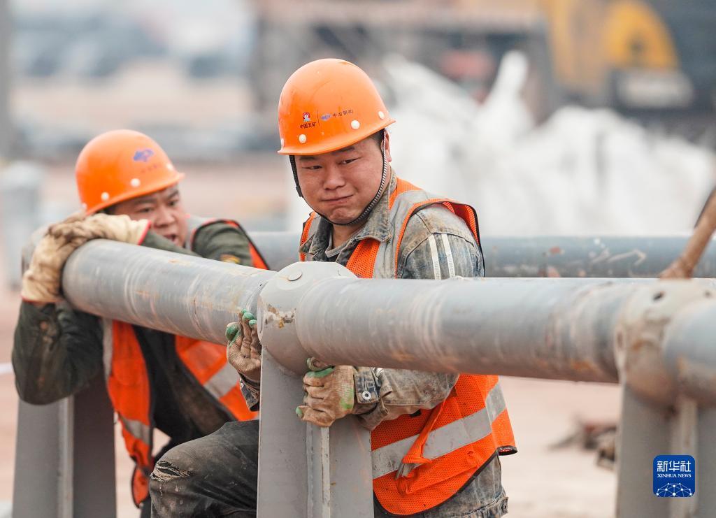 工人在重慶兩江新區(qū)新能源汽車產(chǎn)業(yè)園基礎(chǔ)設(shè)施配套項目現(xiàn)場進(jìn)行鋼結(jié)構(gòu)材料拼裝作業(yè)(1月23日攝)。新華社記者 劉潺 攝
