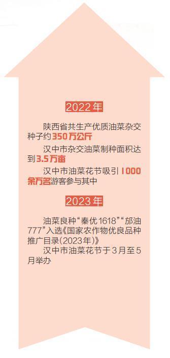 陜西是雜交油菜種業(yè)強(qiáng)省,雜交油菜育種研究和產(chǎn)業(yè)化開(kāi)發(fā)一直走在全國(guó)前列。2022年,陜西省制定《油菜產(chǎn)業(yè)綠色革命科技三年行動(dòng)實(shí)施方案》,取得明顯成效。陜西省去年全年共生產(chǎn)優(yōu)質(zhì)油菜雜交種子約350萬(wàn)公斤。勉縣、城固縣、洋縣入選全國(guó)油菜產(chǎn)業(yè)綠色革命科技示范縣;陜西農(nóng)業(yè)科研單位培育的油菜良種“秦優(yōu)1618”“邡油777”入選2022年國(guó)家糧油生產(chǎn)主導(dǎo)品種和《國(guó)家農(nóng)作物優(yōu)良品種推廣目錄(2023年)》;漢中市農(nóng)業(yè)農(nóng)村局啟動(dòng)糧油“百千萬(wàn)”豐產(chǎn)示范工程,在全市11個(gè)縣(區(qū))建立油菜優(yōu)良品種和綠色高產(chǎn)高效生產(chǎn)技術(shù)百畝示范點(diǎn)56個(gè)8100畝、千畝示范片23個(gè)2.9萬(wàn)畝、萬(wàn)畝示范帶9個(gè)10.5萬(wàn)畝;漢中市南鄭區(qū)和勉縣被農(nóng)業(yè)農(nóng)村部認(rèn)定為國(guó)家級(jí)油菜制種大縣。漢中市委、市政府提出“最強(qiáng)產(chǎn)業(yè)、最優(yōu)種業(yè)、最美花海”的發(fā)展戰(zhàn)略,以“花”為媒,將漢中市油菜花節(jié)打造成推動(dòng)鄉(xiāng)村振興和發(fā)展文化旅游的重要載體。2022年,1000余萬(wàn)名游客前來(lái)觀光旅游或參與線上活動(dòng)。“油菜經(jīng)濟(jì)”堪稱(chēng)陜西的一張金色名片。