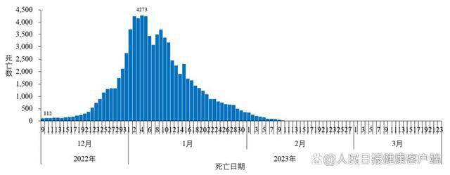 在院新冠病毒感染死亡病例數方面,于1月4日達到每日峰值4273例,隨后持續(xù)下降,3月23日為0例。3月17日至 3月23日,31個?。ㄗ灾螀^(qū)、直轄市)及新疆生產建設兵團醫(yī)療機構累計在院新冠病毒感染相關死亡病例 0 例。