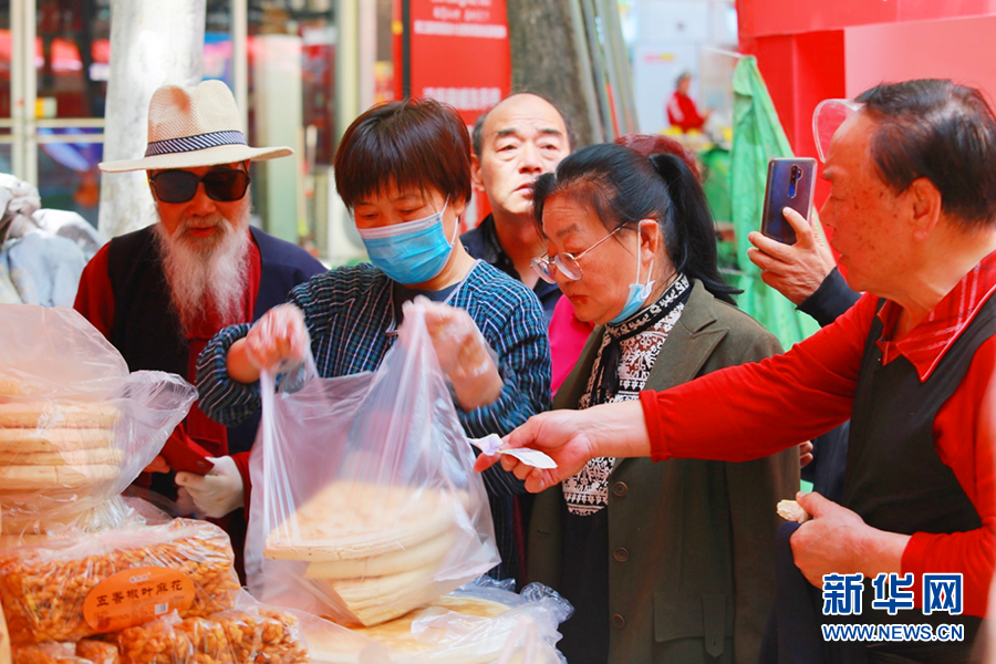 在第三屆陜西面食大會(huì)現(xiàn)場(chǎng),觀眾購(gòu)買面食鍋盔。新華網(wǎng) 楊喜龍 攝