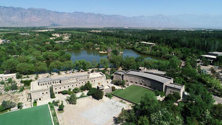 “不與人爭糧、不與糧爭地、水資源高效利用”是寧夏葡萄酒產(chǎn)業(yè)的主要特征之一,當(dāng)?shù)仄咸逊N植基地主要利用戈壁荒灘建設(shè),且普遍采用節(jié)水灌溉技術(shù)。據(jù)統(tǒng)計,通過釀酒葡萄種植,當(dāng)?shù)匾褜?5萬畝荒灘變成了綠洲,加上酒莊綠化和近6萬畝防護(hù)林,產(chǎn)區(qū)森林覆蓋率得到大幅提高,進(jìn)一步筑牢賀蘭山東麓生態(tài)屏障。