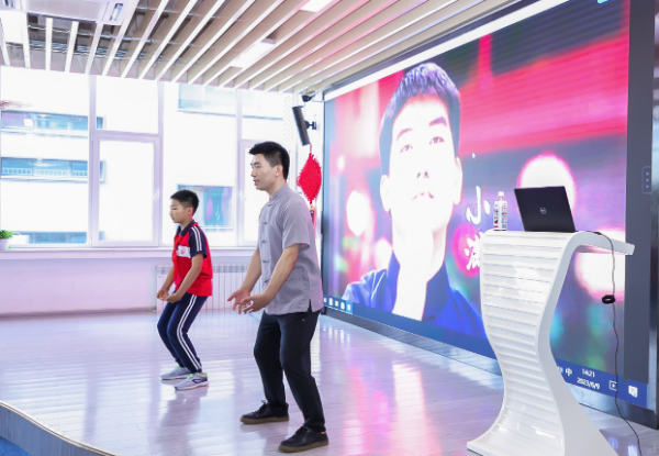 作為示范活動,北京理工大學(xué)附屬實驗學(xué)校除了開展主題日活動,還開設(shè)了其他特色課程,舉辦中醫(yī)藥游園會,吸引眾多學(xué)生參與?;顒蝇F(xiàn)場,非遺傳承人代金剛手把手指導(dǎo)同學(xué)們練習(xí)八段錦。在中醫(yī)藥文化知識角,一名同學(xué)正跟著屏幕上的動作指引練習(xí)五禽戲。除了智能互動系統(tǒng),學(xué)校還專門布置中醫(yī)藥展覽、藥物標(biāo)本、器具模型等,讓同學(xué)們時時感受多樣的中醫(yī)藥文化。